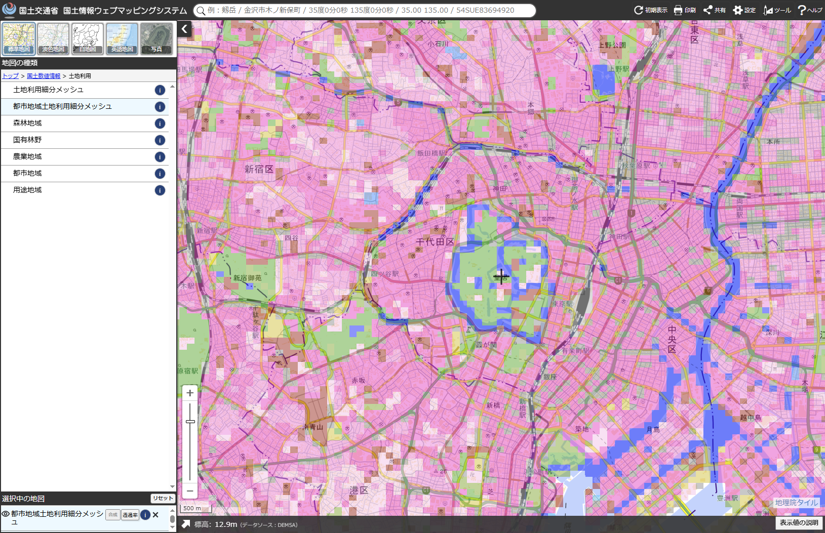 このほか、不動産に関連した情報を集約した「不動産情報ライブラリ」でも国土数値情報の一部データを表示することができます。