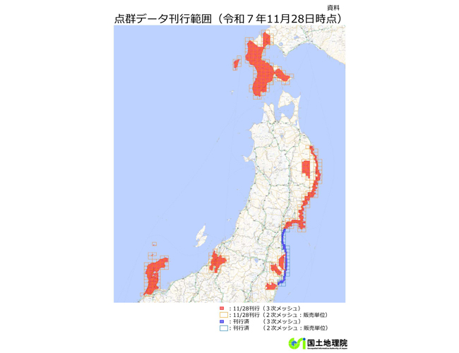 国土地理院は11月28日、航空レーザー測量データをもとに作成した点群データの刊行範囲を拡大しました。