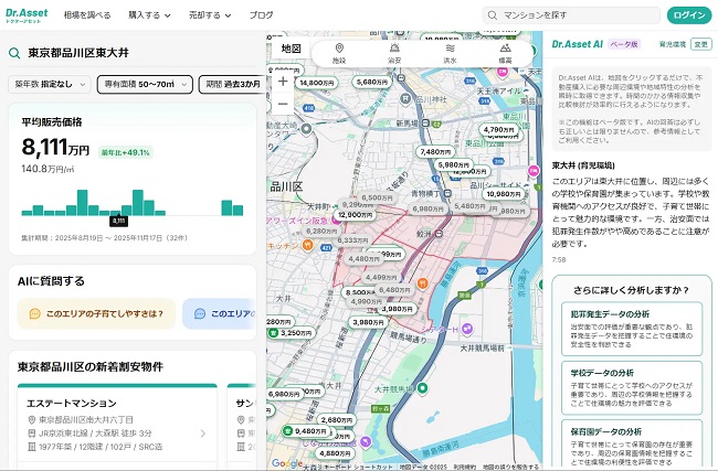 エステートテクノロジーズ株式会社は11月18日、地図上でクリックするだけでAIエージェントを活用できるサービス「Dr.Asset AI」を提供開始しました。