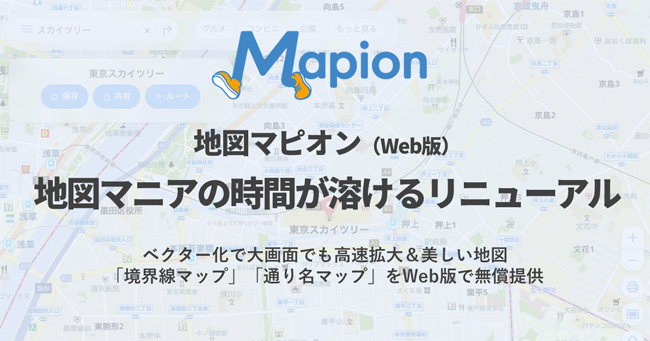 株式会社ONE COMPATHは3月24日、地図情報サービス「Mapion」のウェブ版をアップデートして、地図データをベクトル形式に刷新したと発表しました。